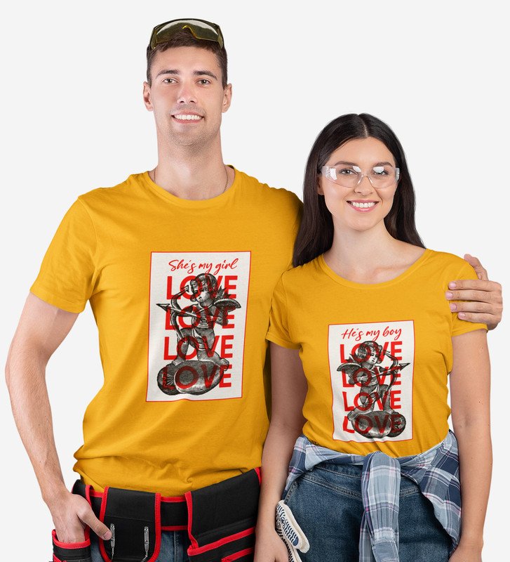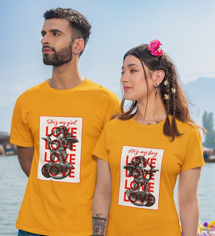 He's My Boy/She's My Girl Printed Couple (Yellow) T-shirts For Couples