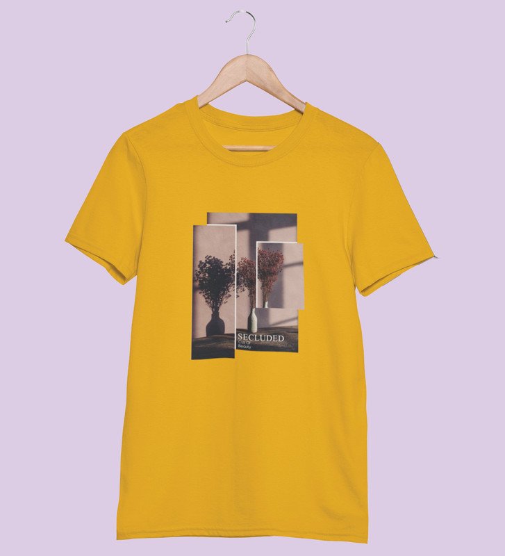 Hidden Beauty Graphic Edge: Stand Out in Yellow Trendy Front Printed Round Neck T-Shirt