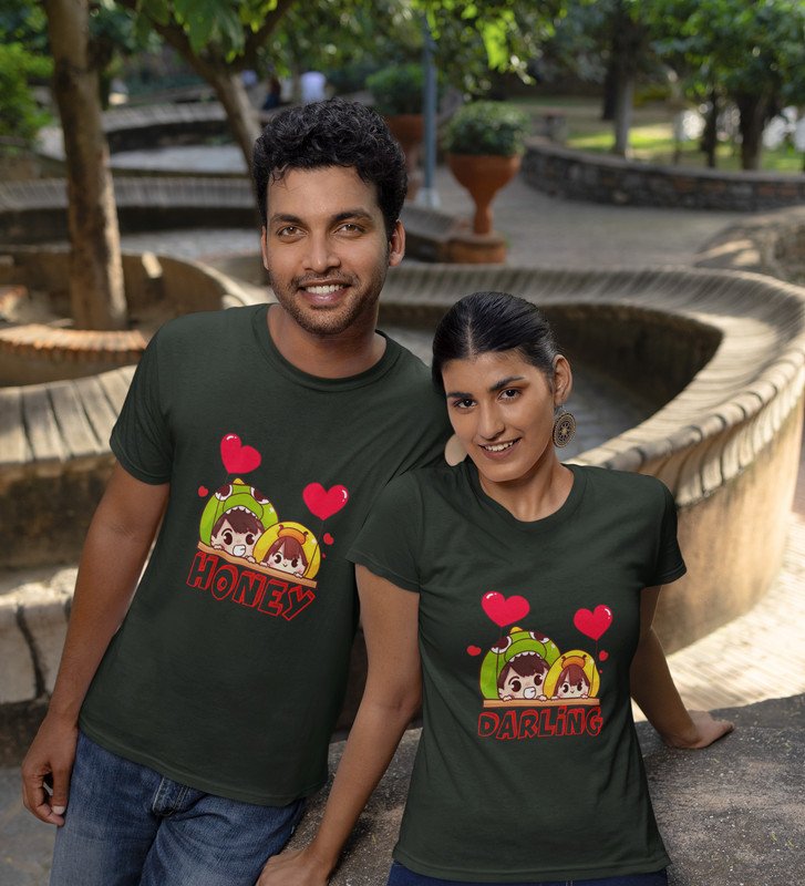 His Darling/Hers Honey Printed Couple (green) T-shirts