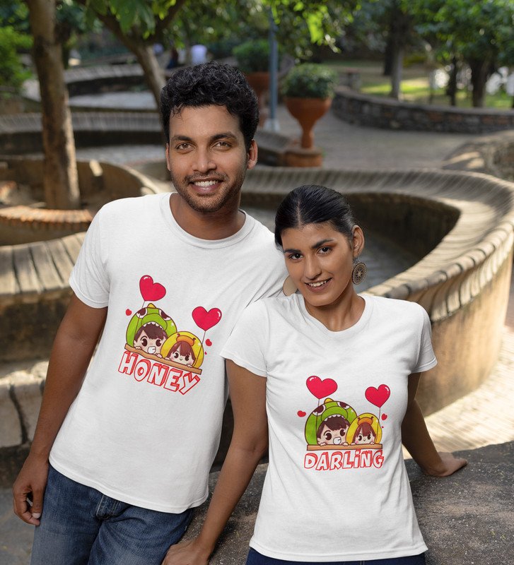 His Darling/Hers Honey Printed Couple (White) T-shirts