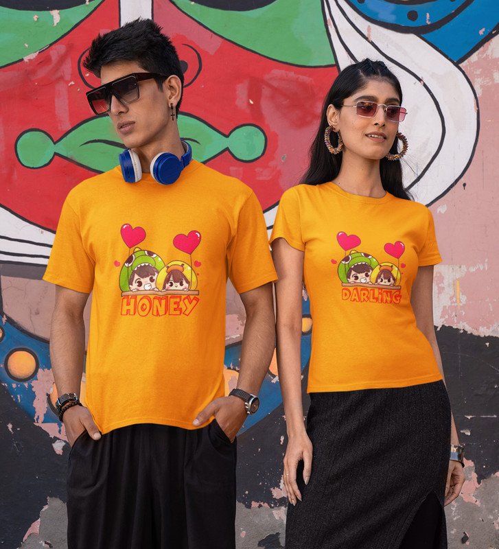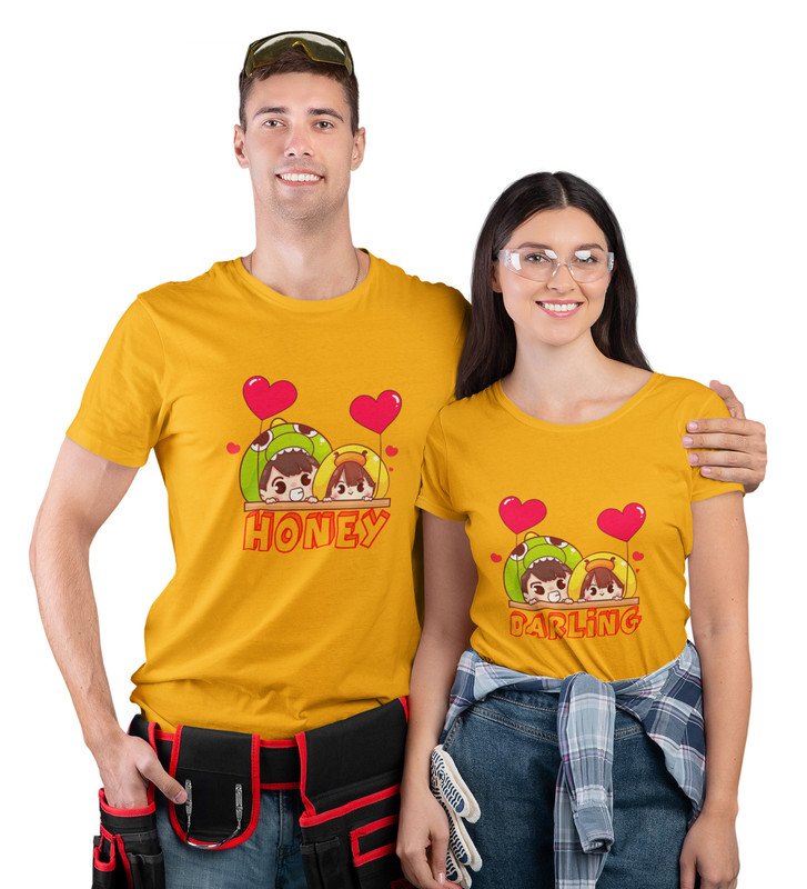 His Darling/Hers Honey Printed Couple (Yellow) T-shirts