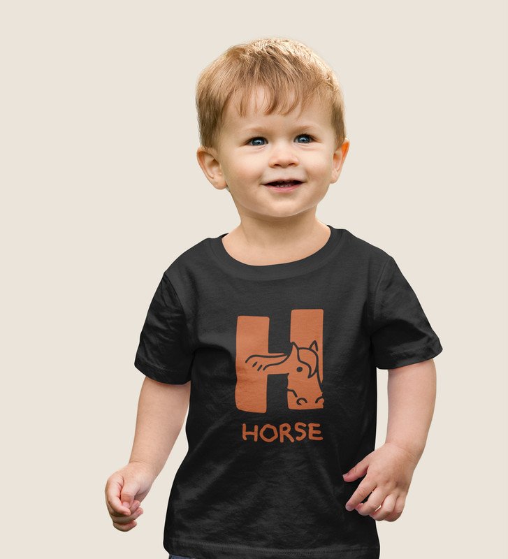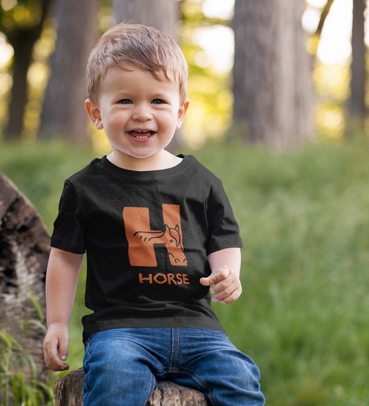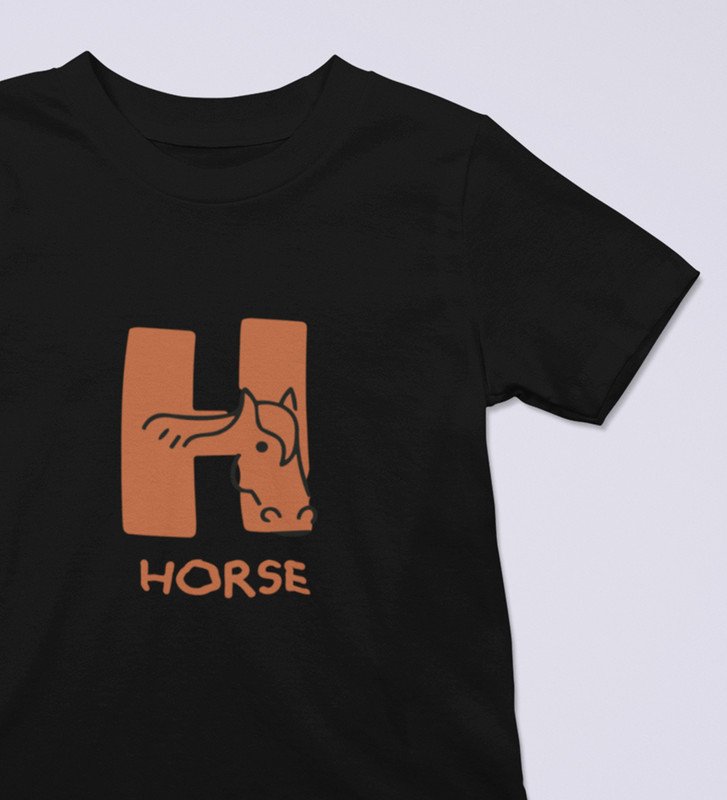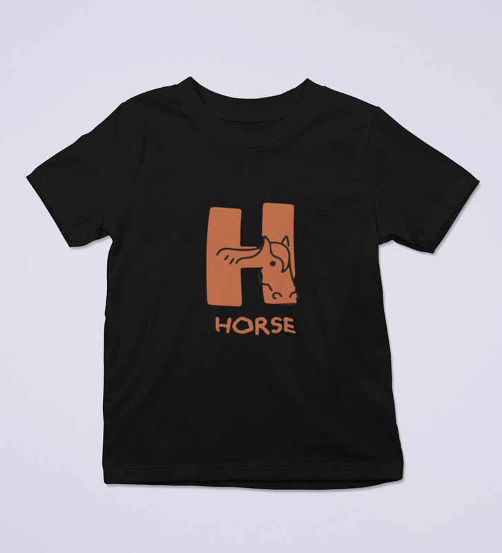 Homely Horse, Boys Round Neck Printed Blended Cotton Tshirt (black)