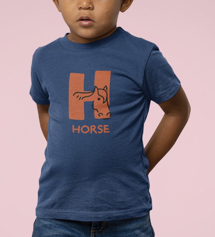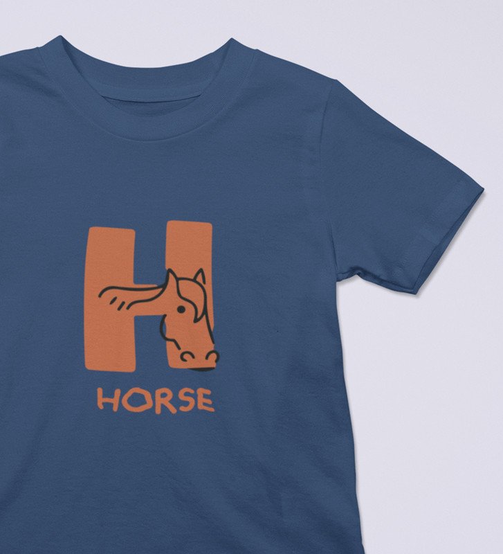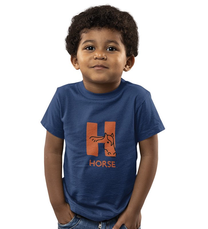 Homely Horse, Boys Round Neck Printed Blended Cotton Tshirt (Navy blue)