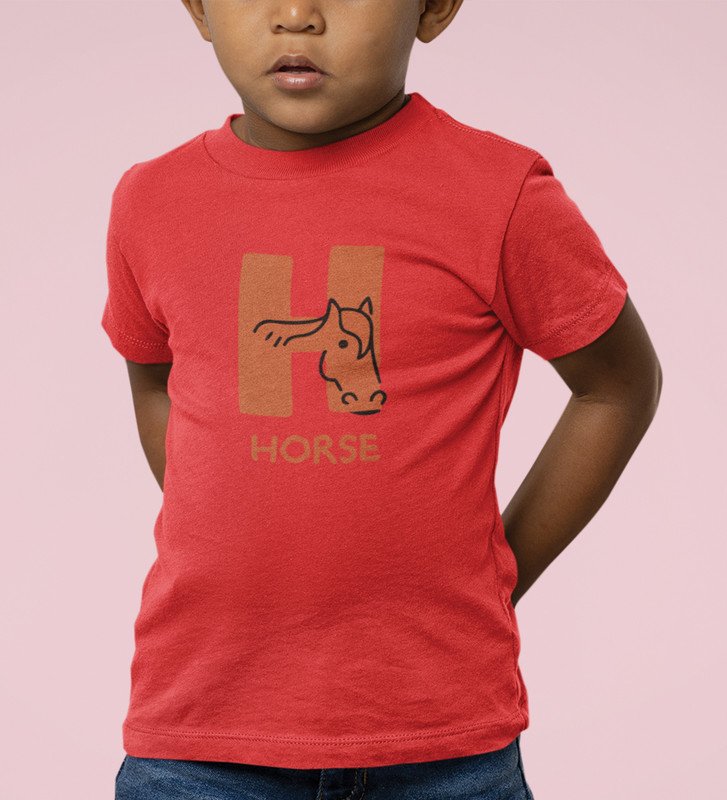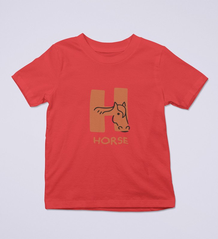 Homely Horse, Boys Round Neck Printed Blended Cotton Tshirt (Red)