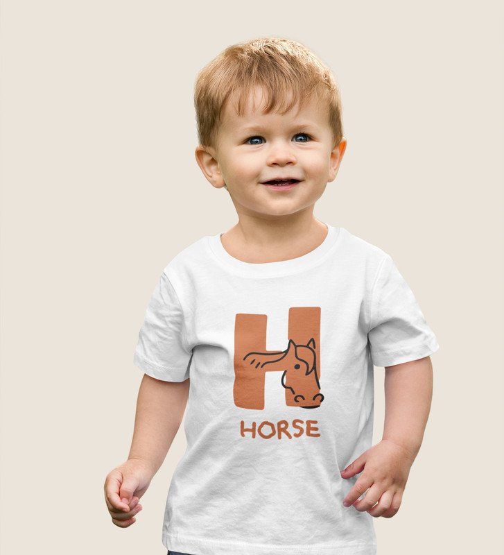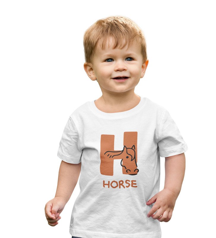 Homely Horse, Boys Round Neck Printed Blended Cotton tshirt (white)
