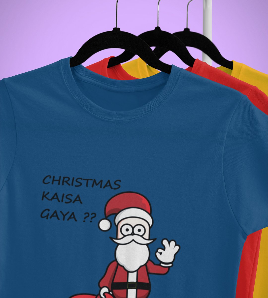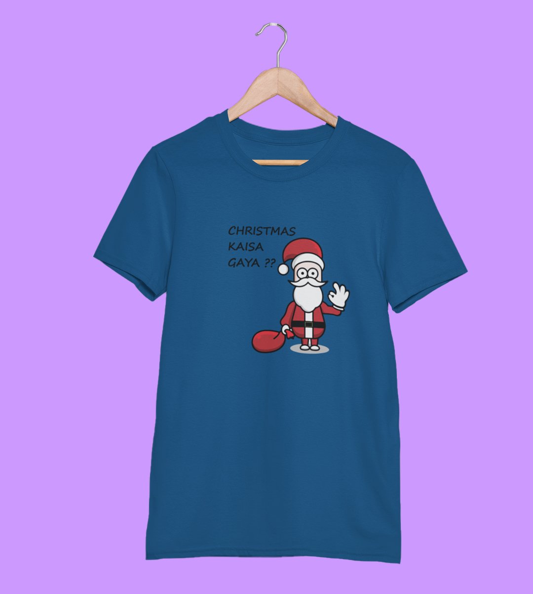 How Was Your Christmas: Cute Printed T-shirt (Blue) Best Gift For Kids Boys Girls