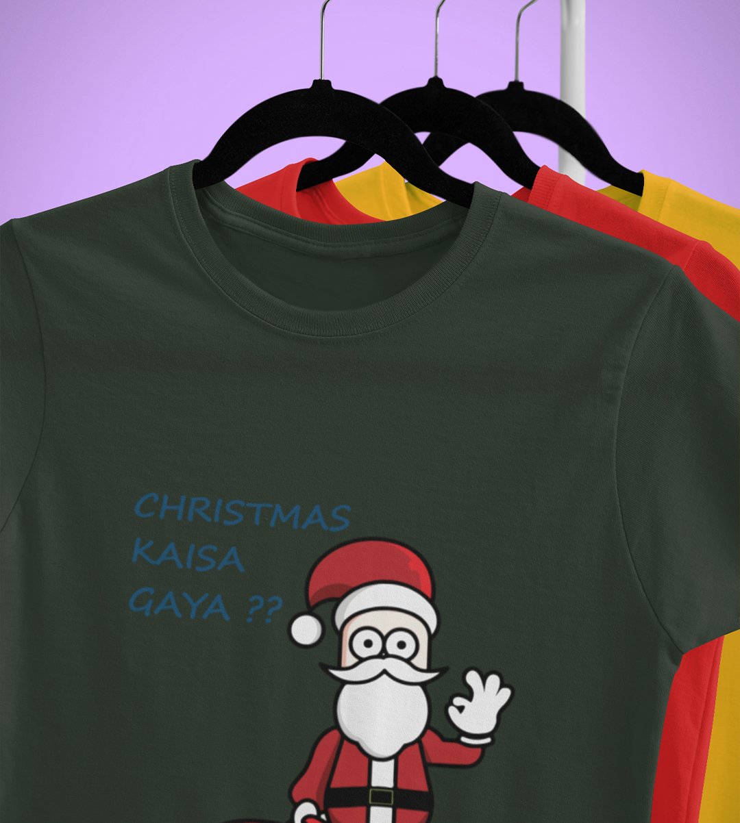 How Was Your Christmas: Cute Printed T-shirt (Green) Best Gift For Kids Boys Girls
