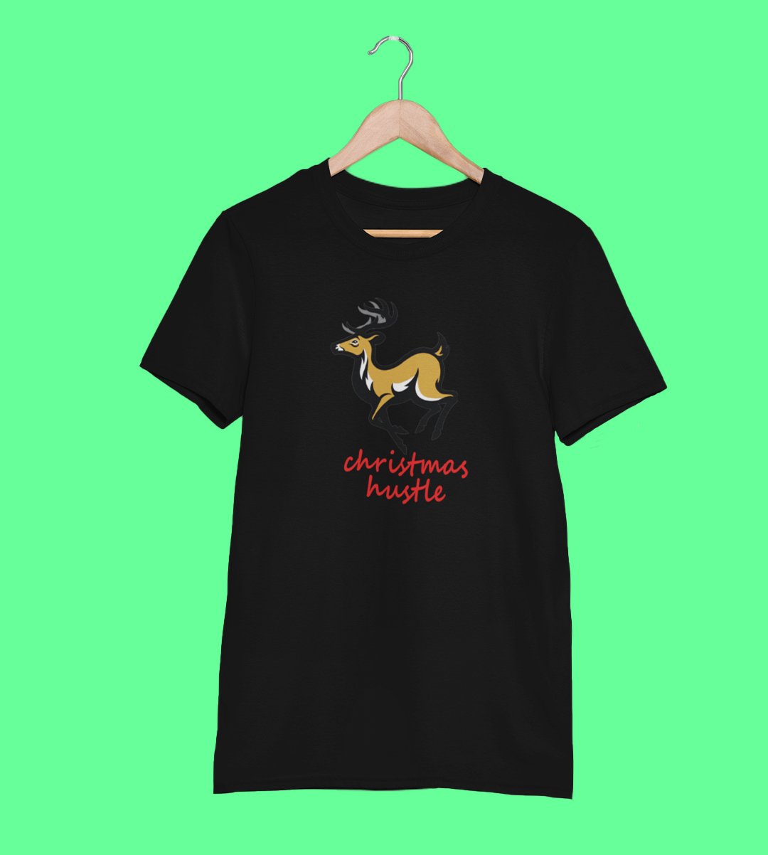 Hustling Reindeer : Funny & Cute Printed T-shirt (Black) Perfect Gift For Secret Santa
