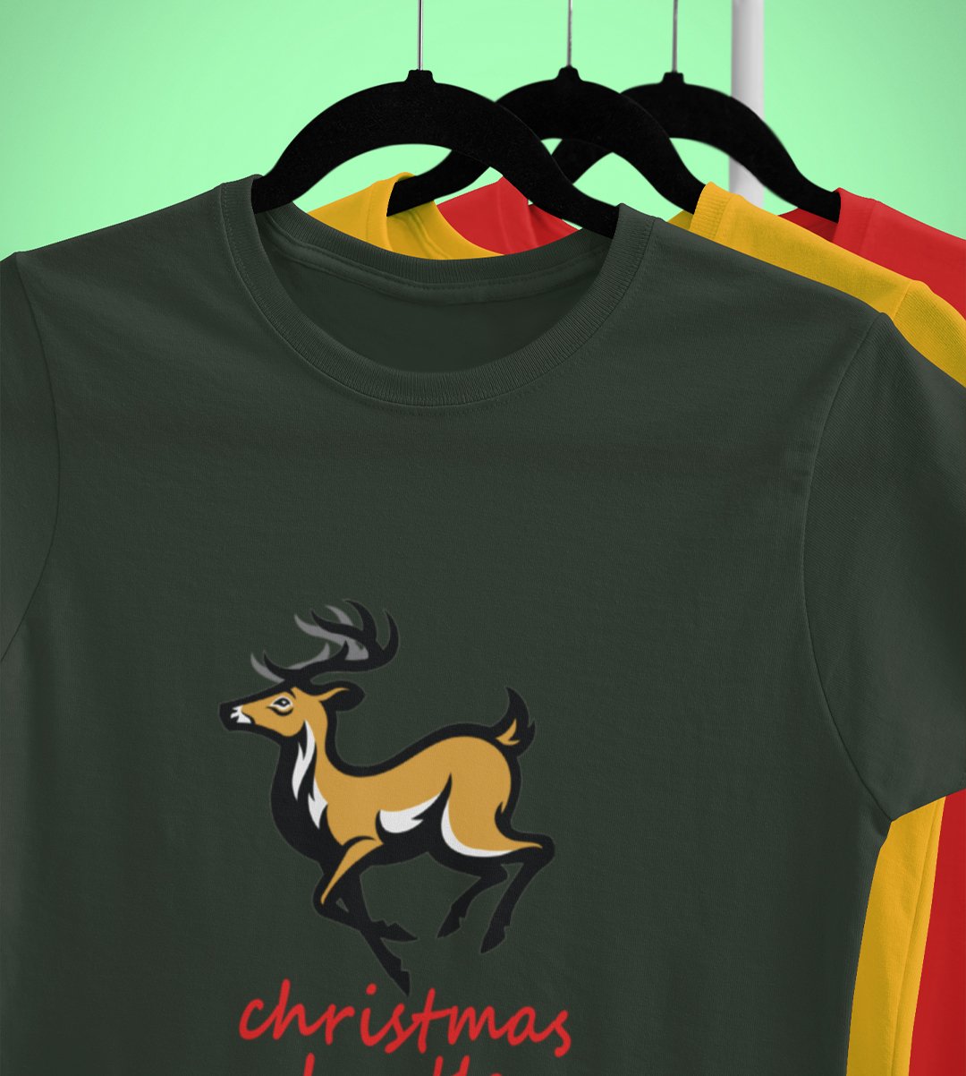 Hustling Reindeer : Funny & Cute Printed T-shirt (Green) Perfect Gift For Secret Santa