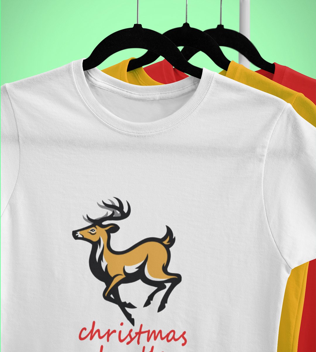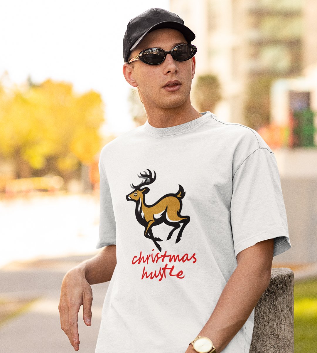 Hustling Reindeer : Funny & Cute Printed T-shirt (White) Perfect Gift For Secret Santa