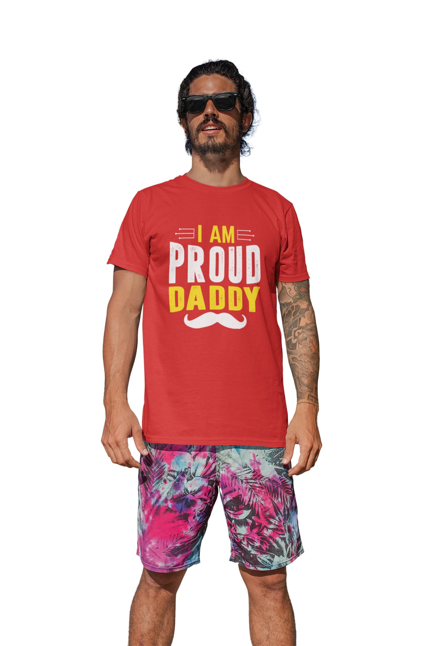 I am proud daddy -printed family themed cotton blended half-sleeve t-shirts made for men (red)