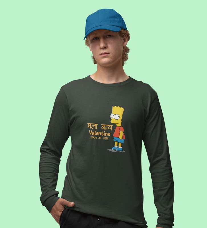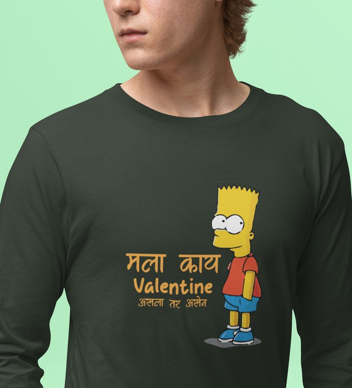 I Don't Care If I Am Valentine: (green) Full Sleeve T-Shirt For Singles