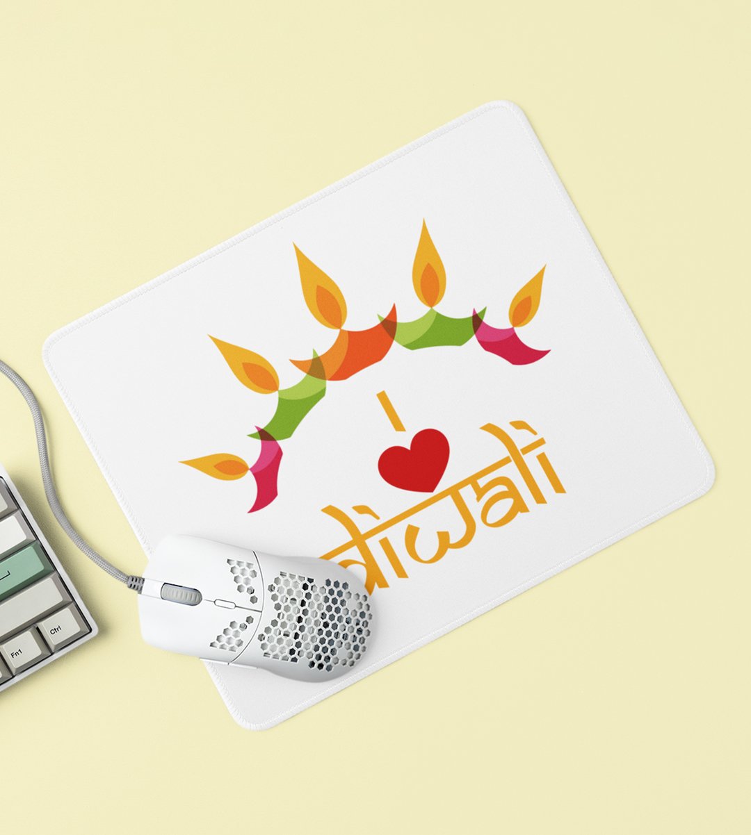 Express your love for Diwali in your workspace with our I Love Diwali Mouse Pad. It's a heartfelt declaration of your affection for the Festival of Lights.