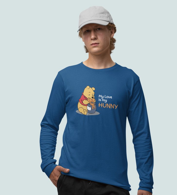 I Love Honey: Printed (blue) Full Sleeve T-Shirt For Singles