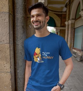 I Love Honey: Printed (Blue) T-Shirt For Singles