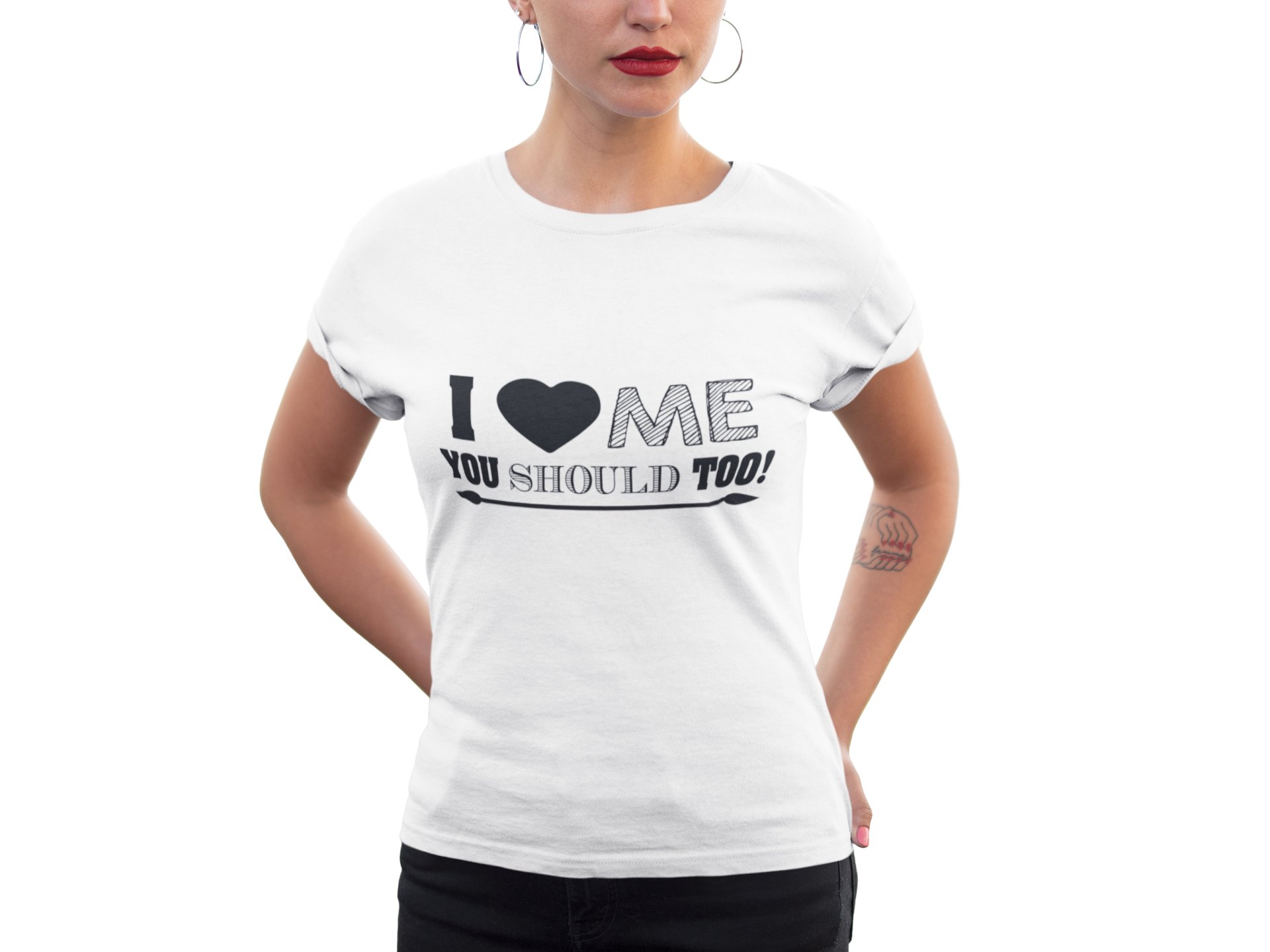 I love me-printed family themed cotton blended half-sleeve t-shirts made for women (white)
