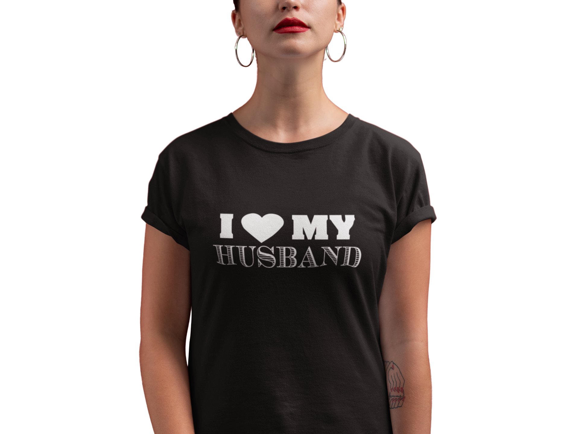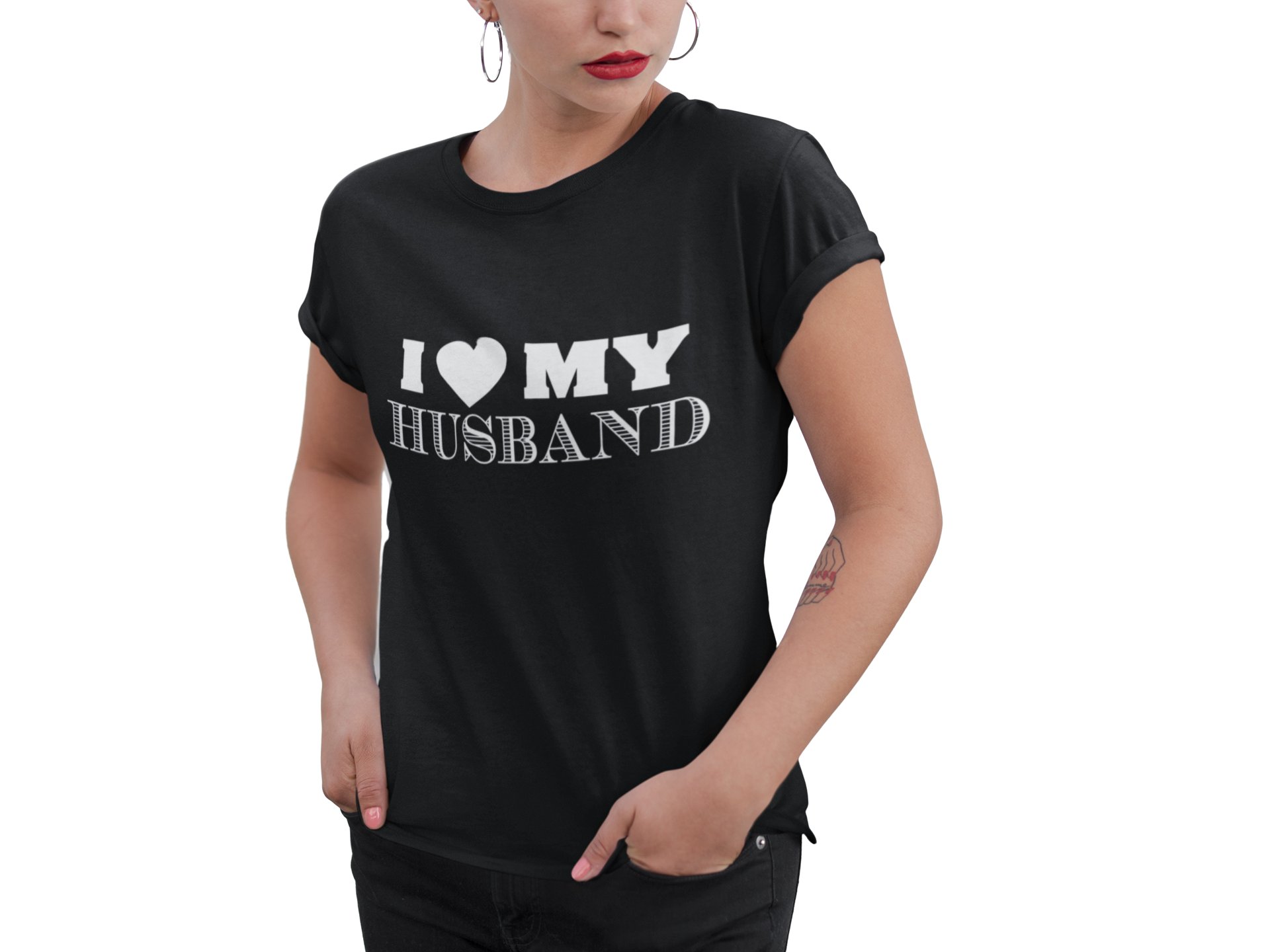 I love my husband-printed family themed cotton blended half-sleeve t-shirts made for women (black)