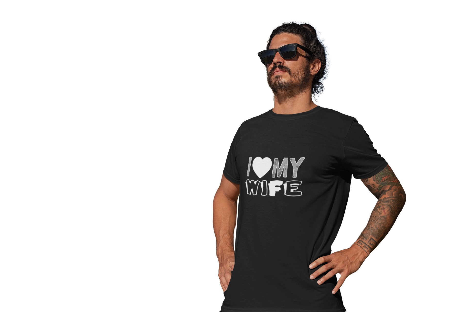 I love my wife(Shaded text) -printed family themed cotton blended half-sleeve t-shirts made for men (black)