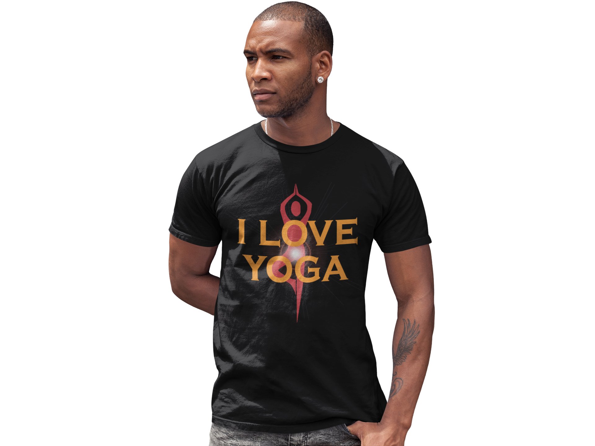 I Love Yoga, Red Lady Doing Yogasan, (Text Yellow), Round Neck Tshirt - Clothes for Yoga Lovers - Suitable For Regular Yoga Going People - Foremost Gifting Material for Your Friends and Close Ones