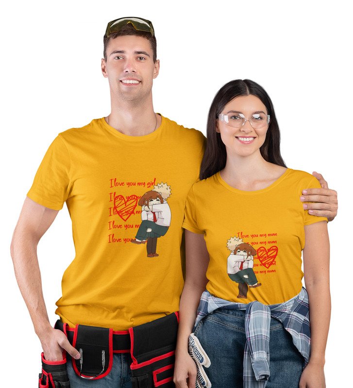 I Love You Man/I Love You My Girl Printed Couple (Yellow) T-shirts