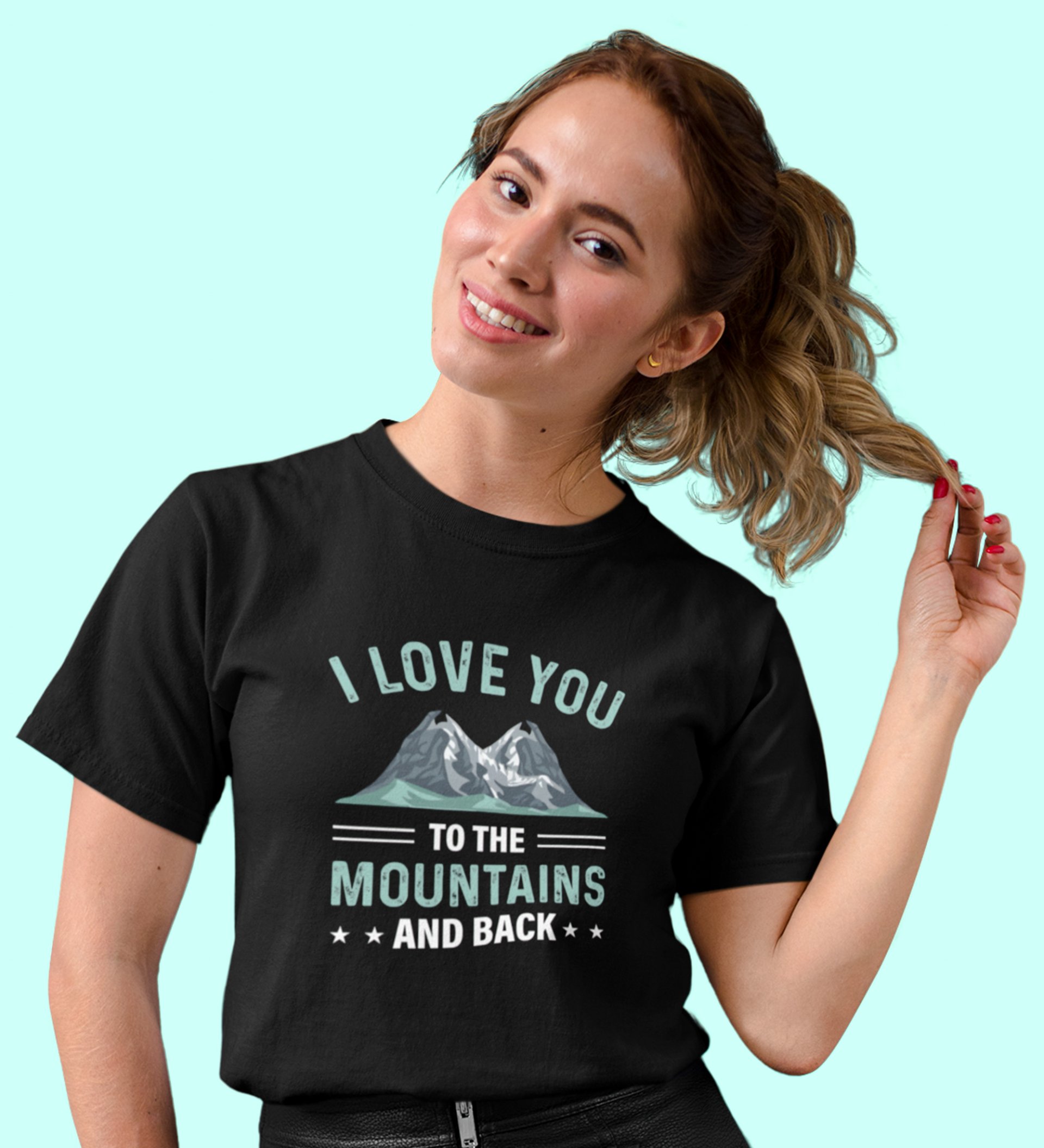 HopOfferI love you Black Round Neck Cotton Half Sleeved Women's T-Shirt with Printed Graphics