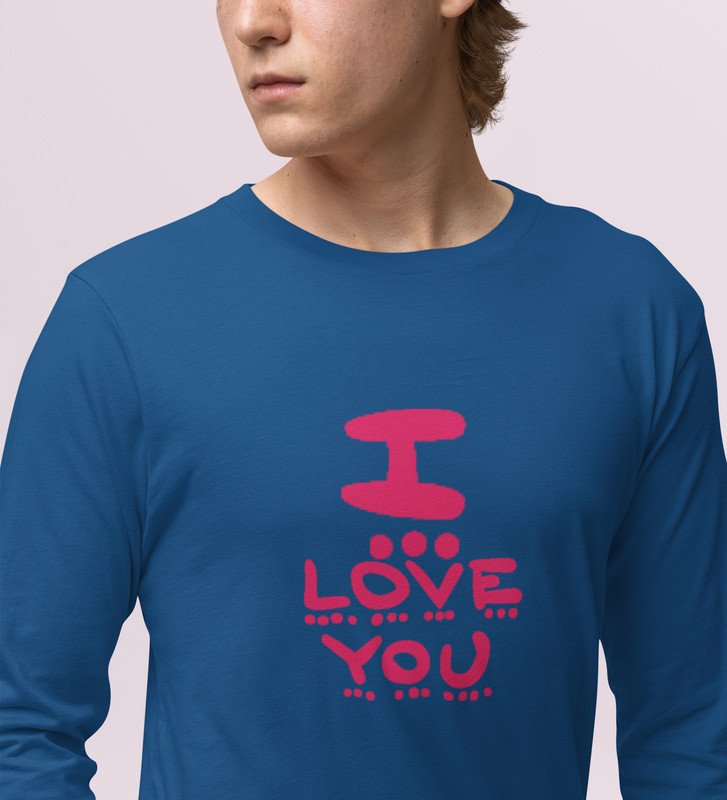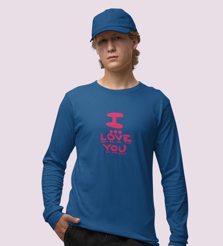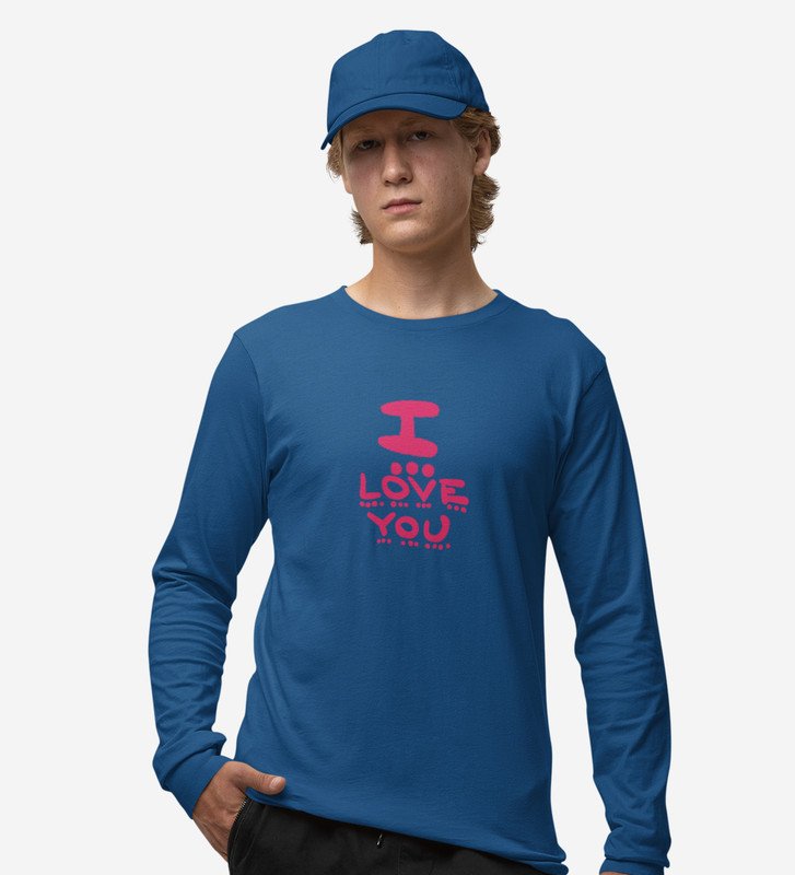 I Love You: Sublimation Printed (blue) Full Sleeve T-Shirt For Singles