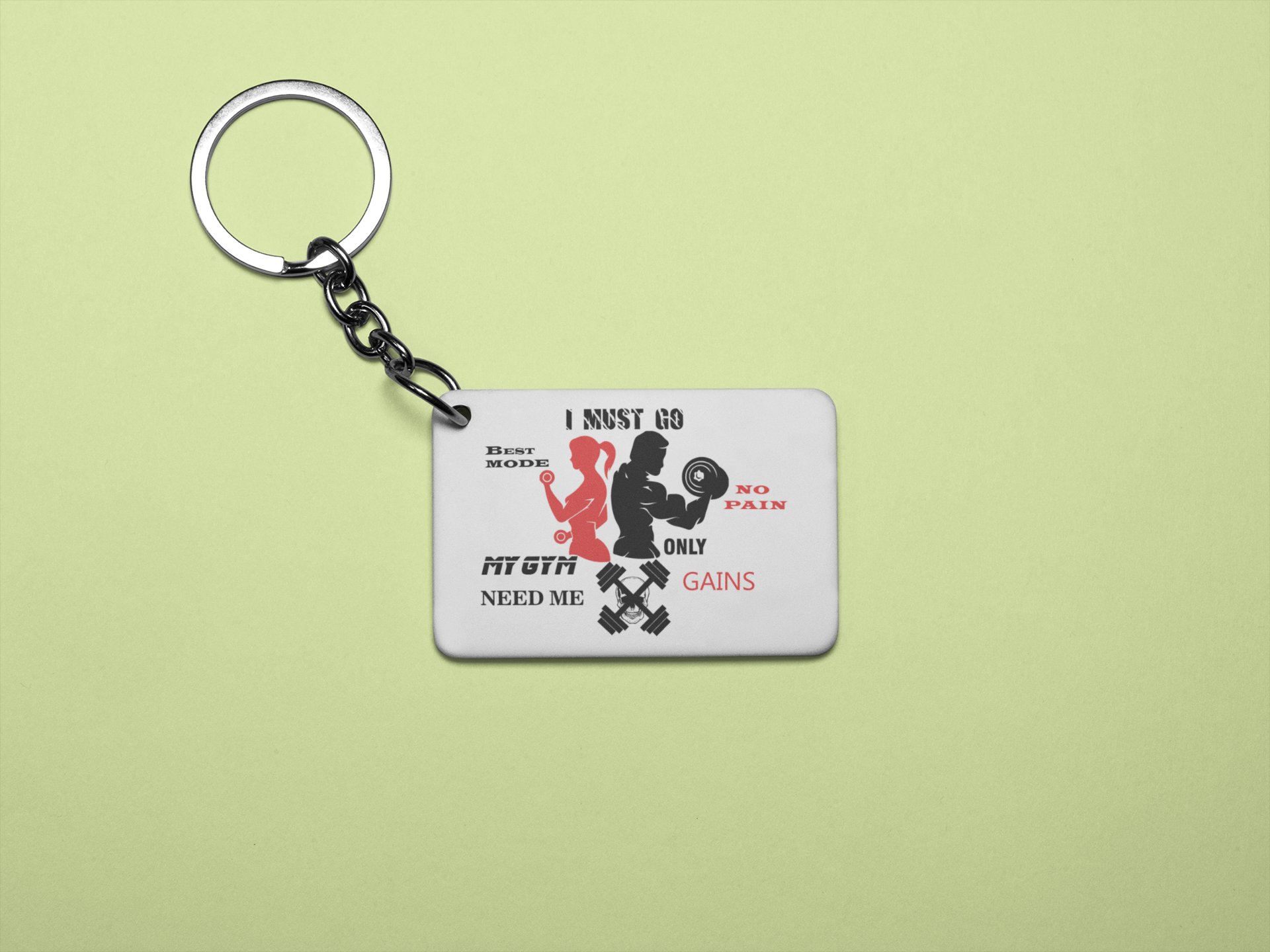 I Must Go Beat Mode, No Pain, Only Gain - Printed Keychains for gym lovers White(Pack of 2)