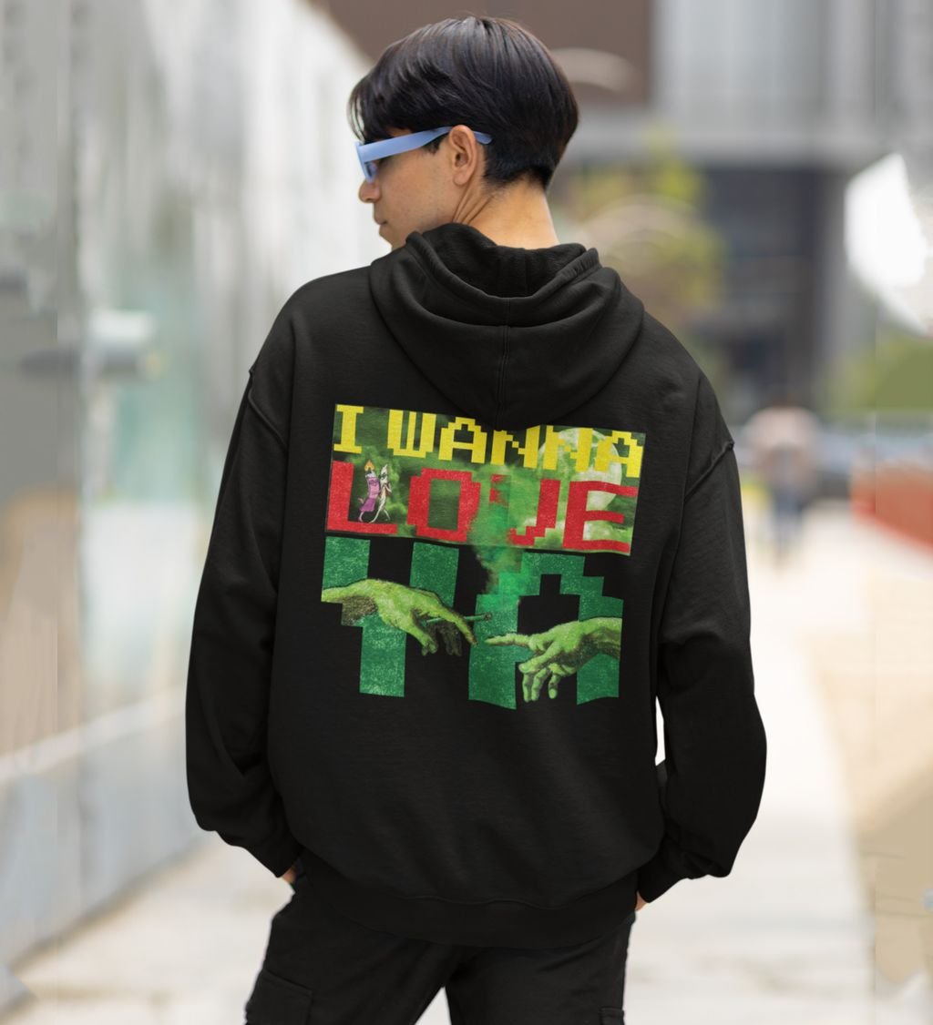 I Wanna Love Ya Spread Love and Chill Vibes Black Cotton Printed Hoodie For Men