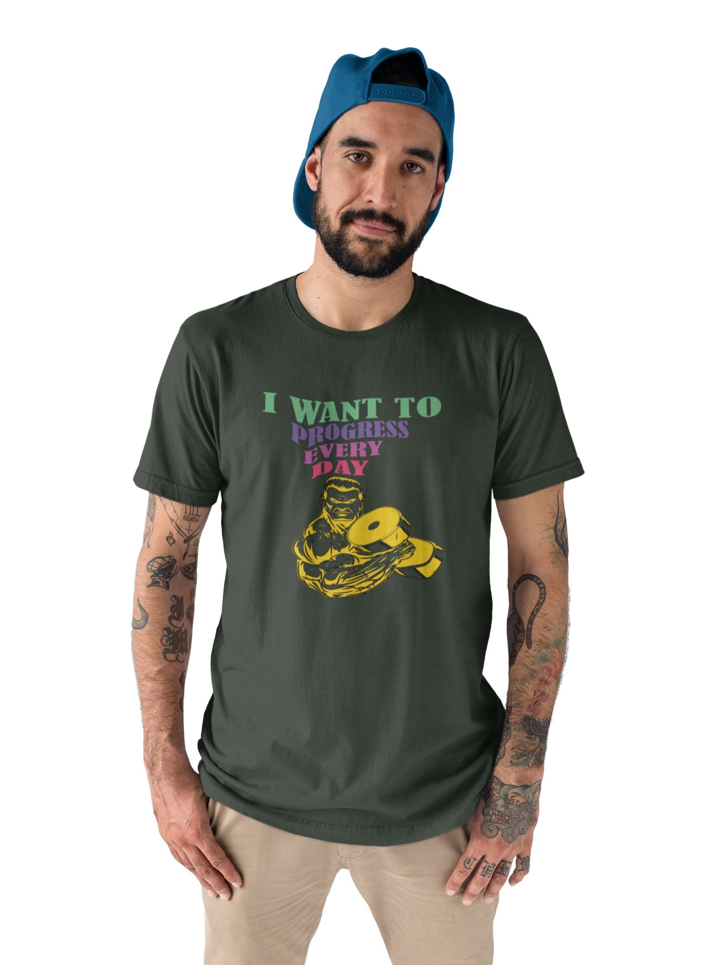 I Want to Progress Everyday, Muscle Man- Yellow, Round Neck Gym Tshirt - Foremost Gifting Material for Your Friends and Close Ones