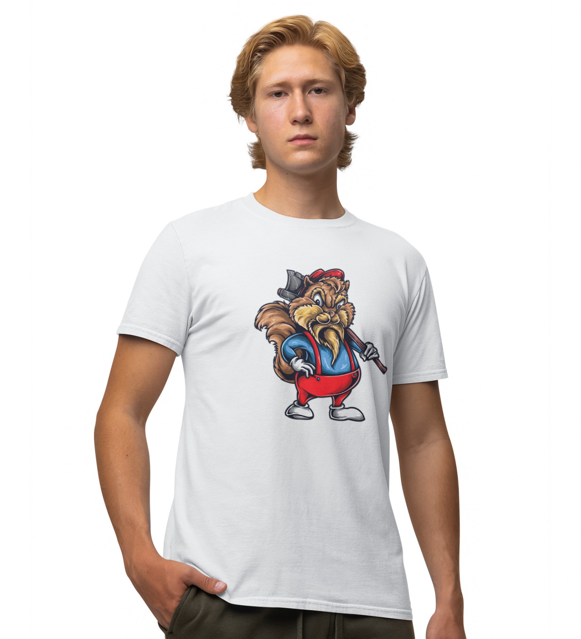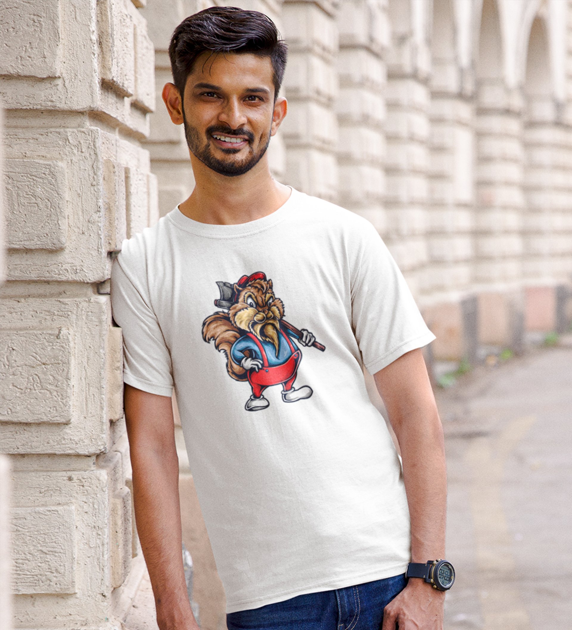 Furious Squirrel White Round Neck Cotton Half Sleeved Men's T-Shirt with Printed Graphics