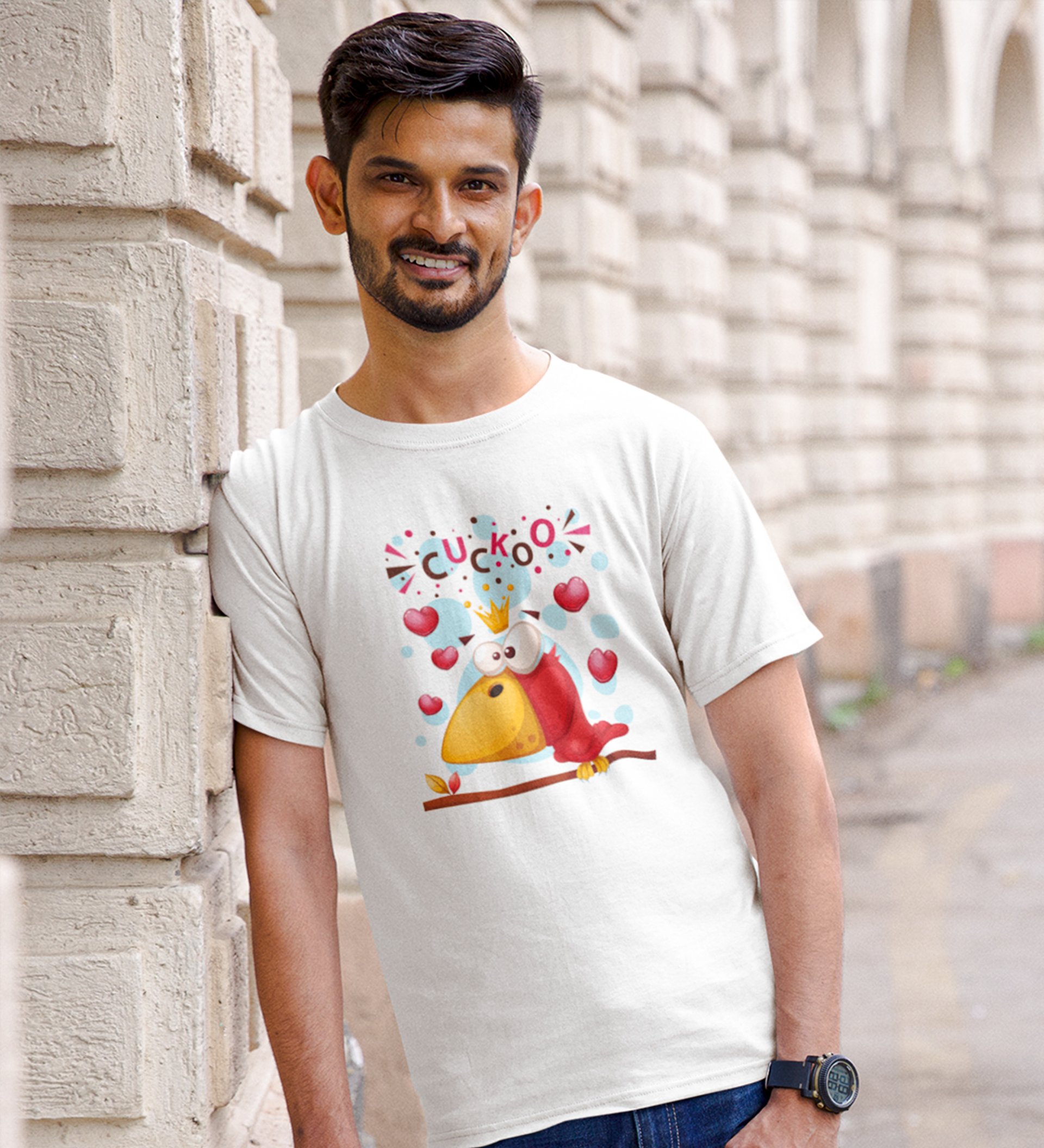 Cuckoo White Round Neck Cotton Half Sleeved Men's T-Shirt with Printed Graphics