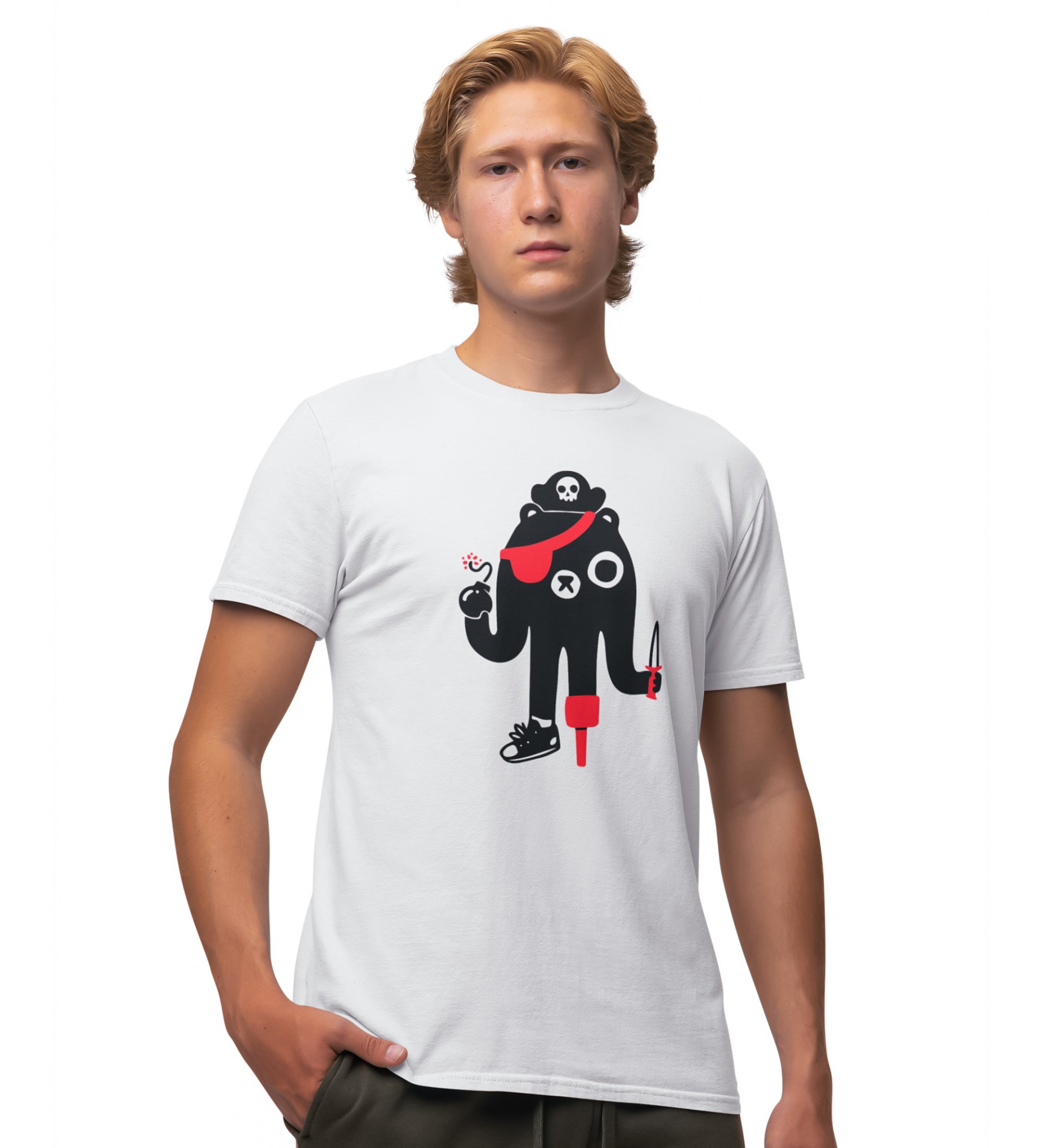Cutest Pirate White Round Neck Cotton Half Sleeved Men's T-Shirt with Printed Graphics