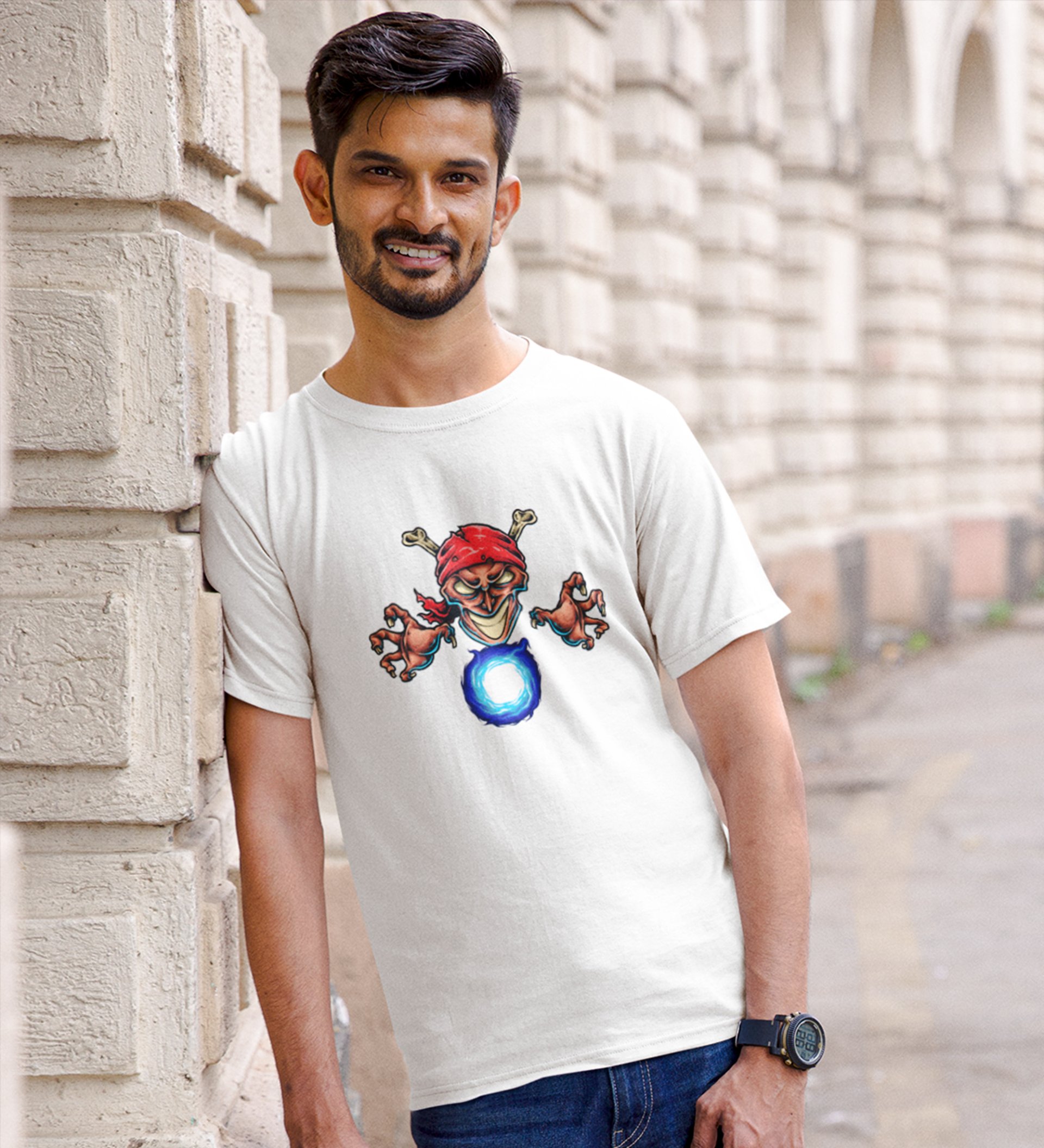Magician White Round Neck Cotton Half Sleeved Men's T-Shirt with Printed Graphics