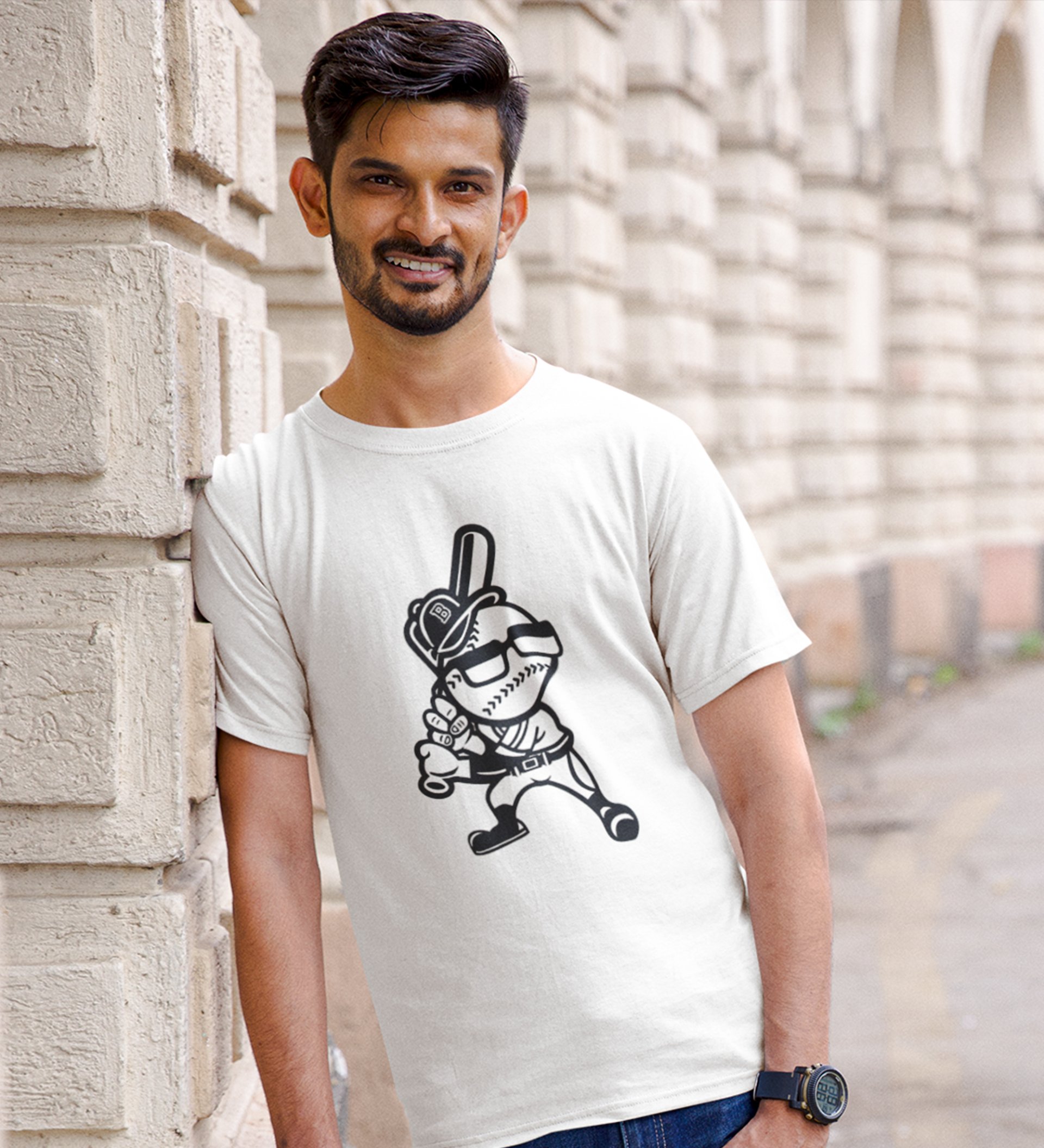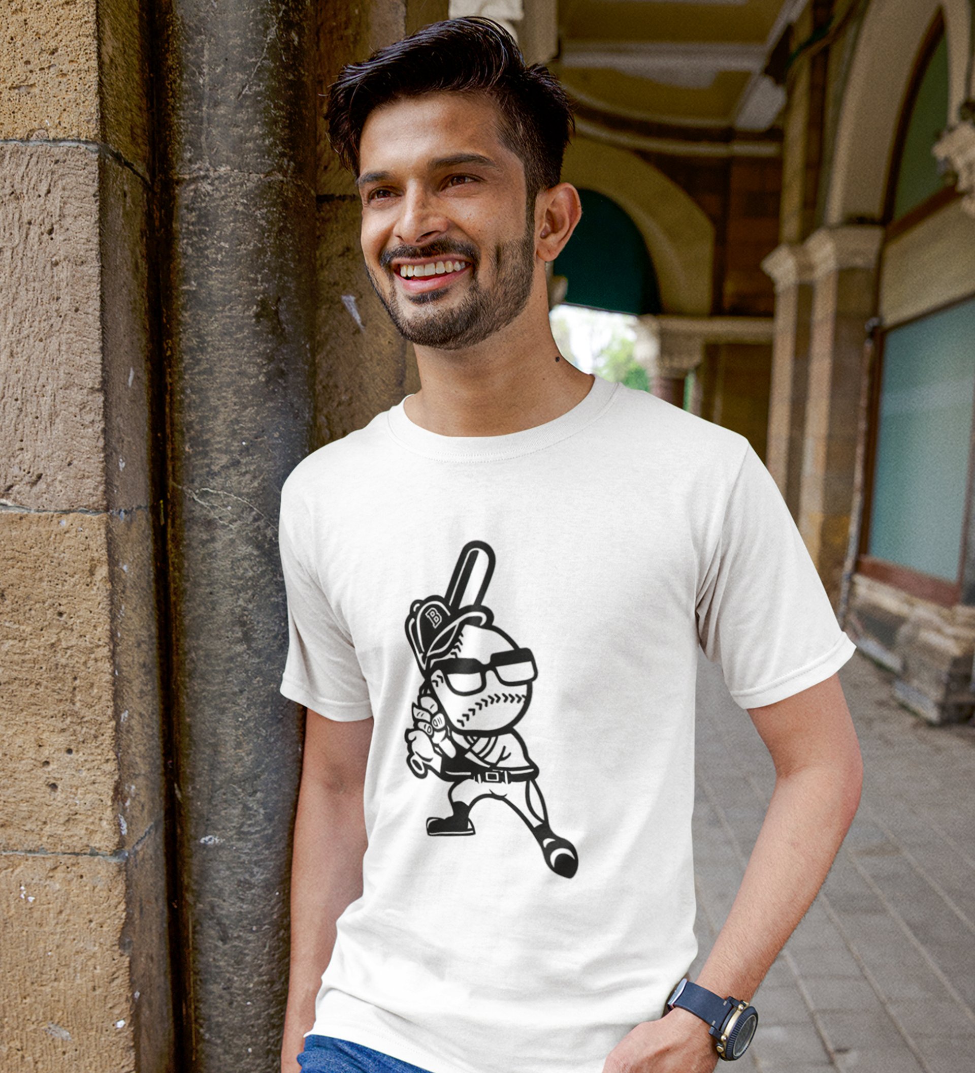 The Baseball Man White Round Neck Cotton Half Sleeved Men's T-Shirt with Printed Graphics