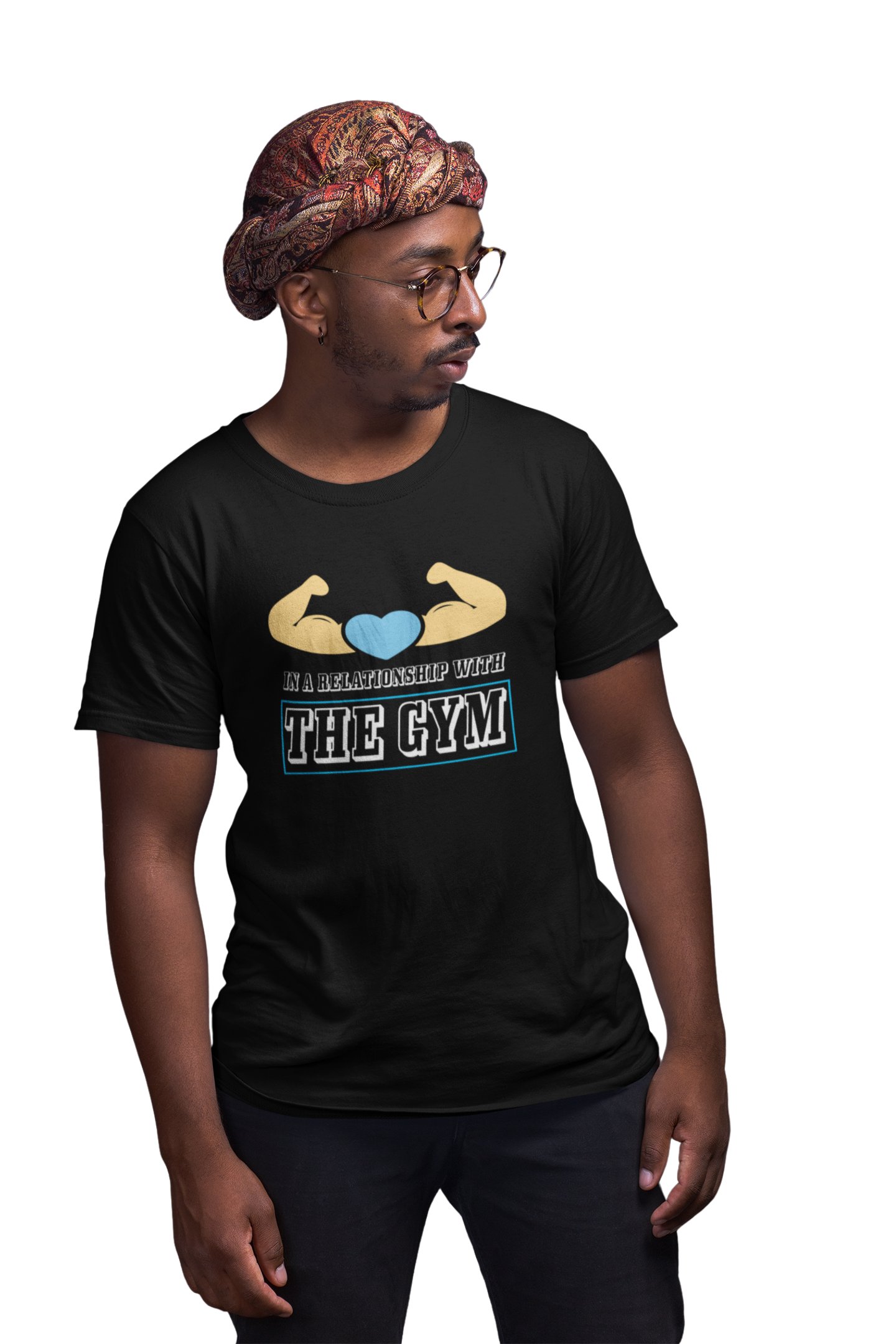 In A Relationship With The Gym, Round Neck Gym Tshirt (Black Tshirt) - Clothes for Gym Lovers - Suitable for Gym Going Person - Foremost Gifting Material for Your Friends and Close Ones