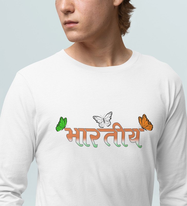 Indian Glory White Round Neck Printed Full Sleeve T-shirts For Boys & Mens
