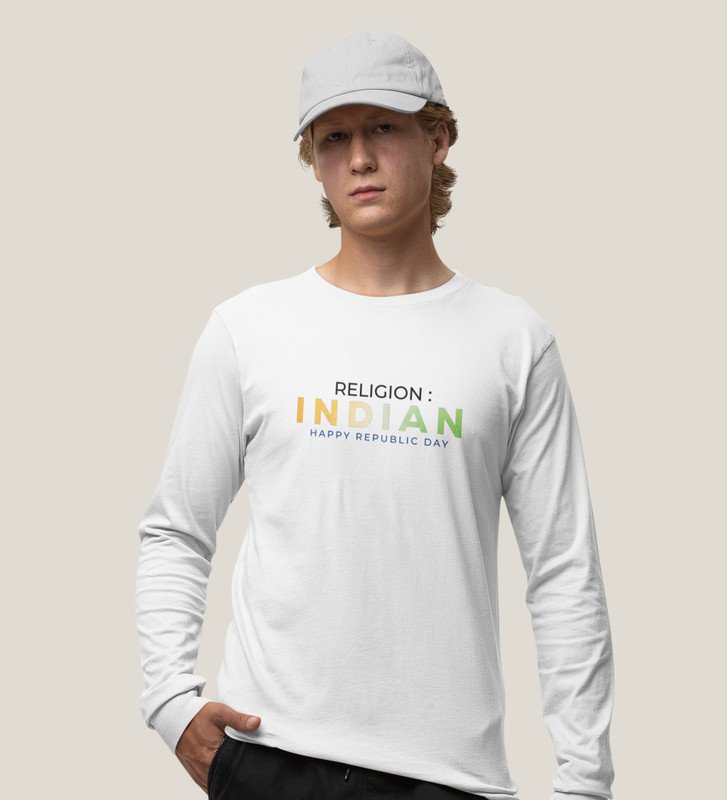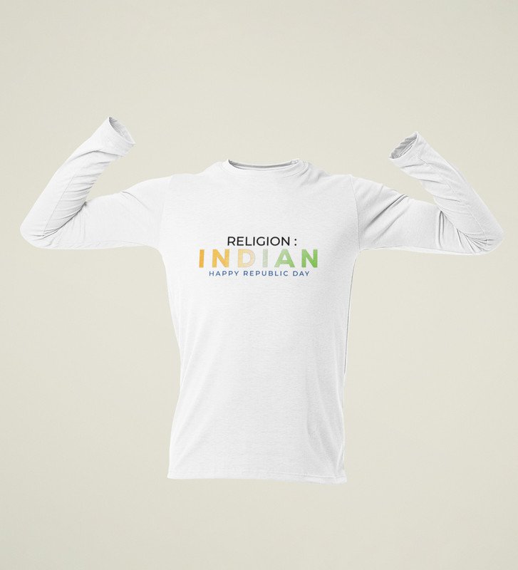 Indian Religion White Round Neck Printed Full Sleeve T-shirts For Men