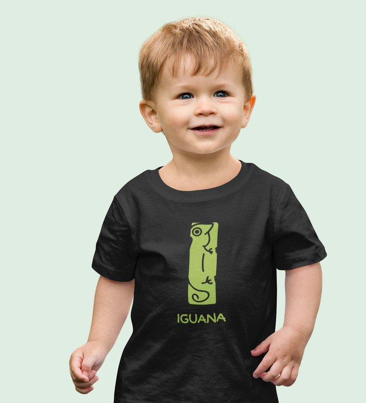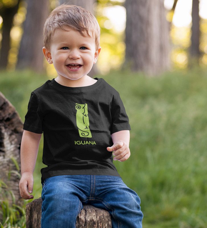 Intelligent Iguana, Boys Printed Crew Neck Tshirt (black)