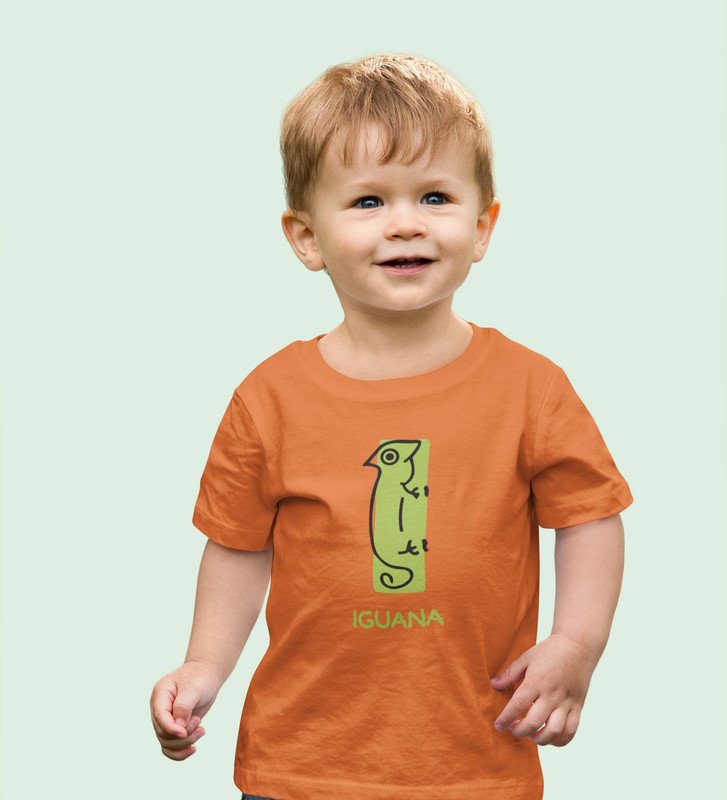 Intelligent Iguana, Boys Printed Crew Neck Tshirt (orange)