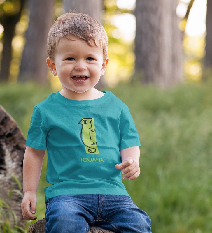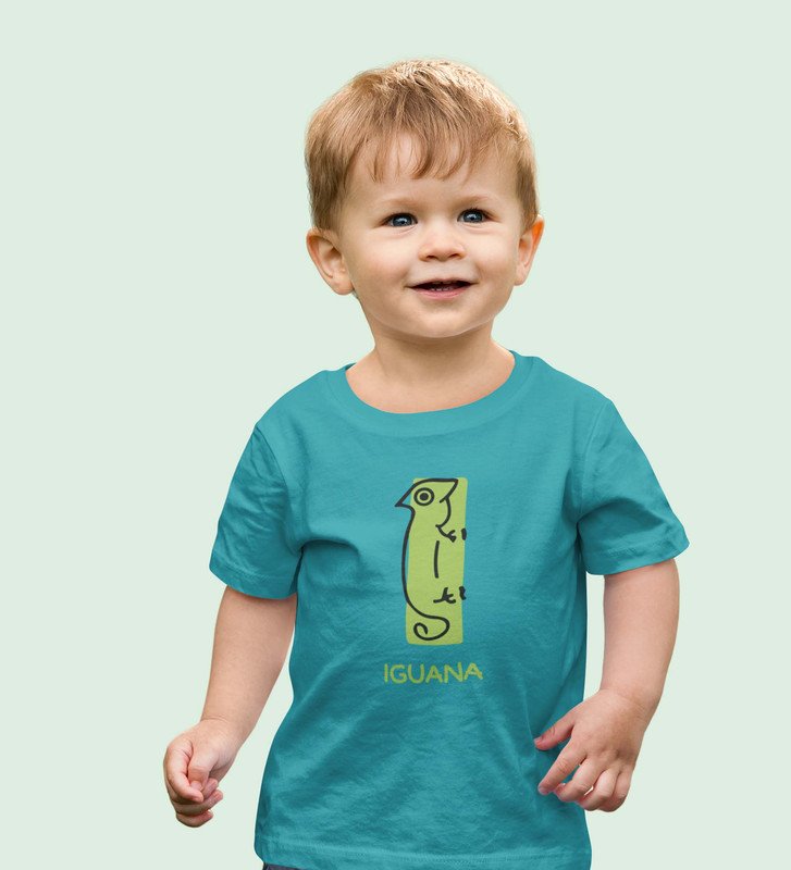 Intelligent Iguana, Boys Printed Crew Neck tshirt (teal)