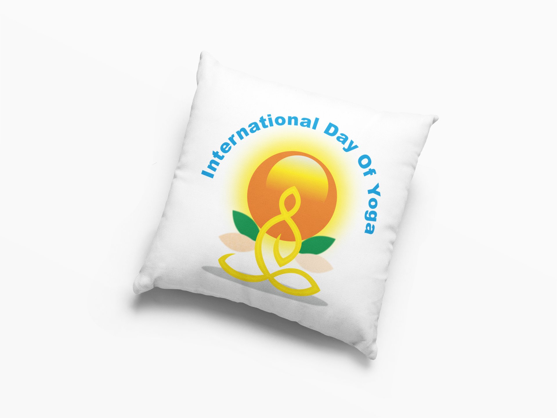 International Yoga Day Text In Sky Blue -Printed Pillow Covers(Pack Of 2)