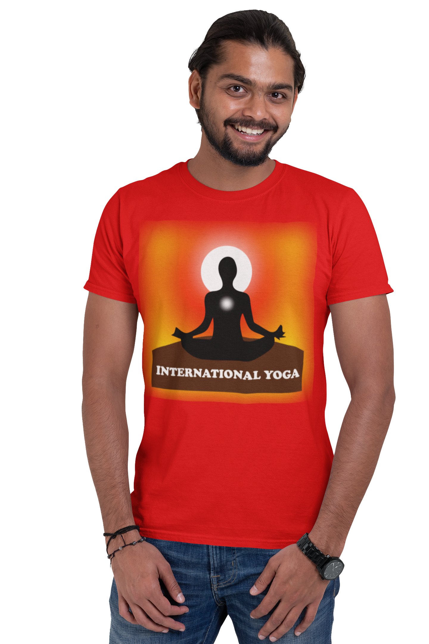 International Yoga Meditation - Red - Comfortable Yoga T-shirts for Yoga Printed Men's T-shirts White