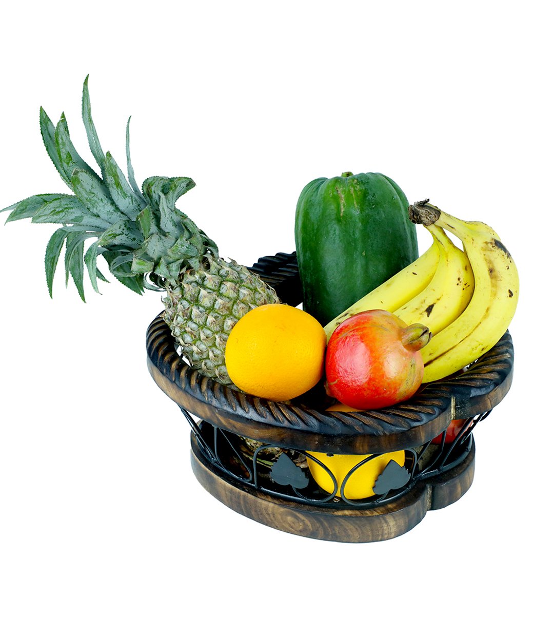 Apple Shape Fruit Basket / wooden and wrought iron fruit and vegetable basket/ fruit vessel/ or a fruit container is used to keep both fruits and vegetables in it. It intricats with every detailing of the product, carryable and its apple shaped basket looks more classy. It is used to keep in dining tables and center tables. The product is made up from wrought iron and wood. Those who love fruits will ofcourse buy it. The designs enhancing the product into a classified one. It has best finishing. You must have your favourite one. We have brought you many fruit and vegetable containers to choose from. You can gift it to your family, relatives, friends, siblings. Also it can be gifted in birthdays, marriages, anniversaries, house warming parties ,chirstmas parties, kitty parties etc. Grab it as soon as possible.