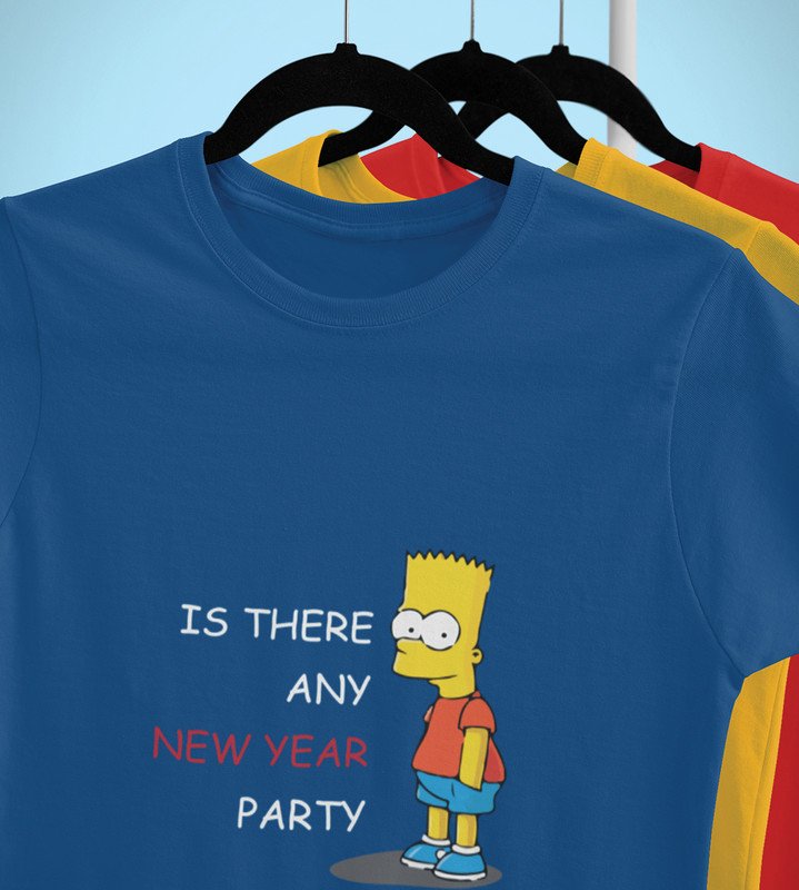 Is There Any Party? Blue Printed T-shirt For Mens On New Year Theme Best Gift For New Year