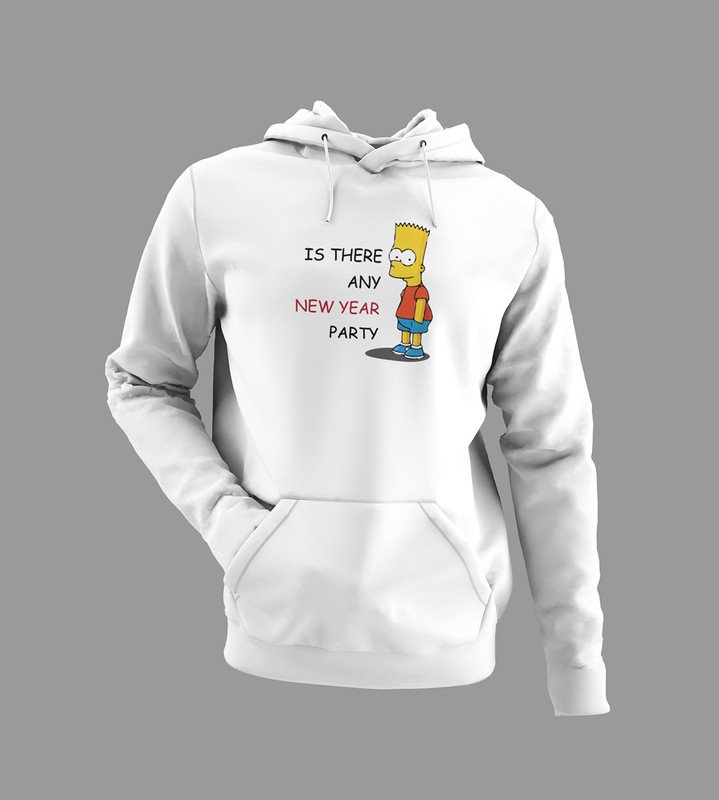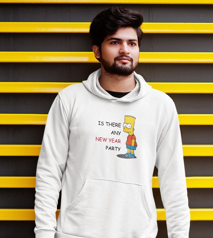Is There Any Party? White Printed Hoodies For Mens On New Year Theme Best Gift For New Year