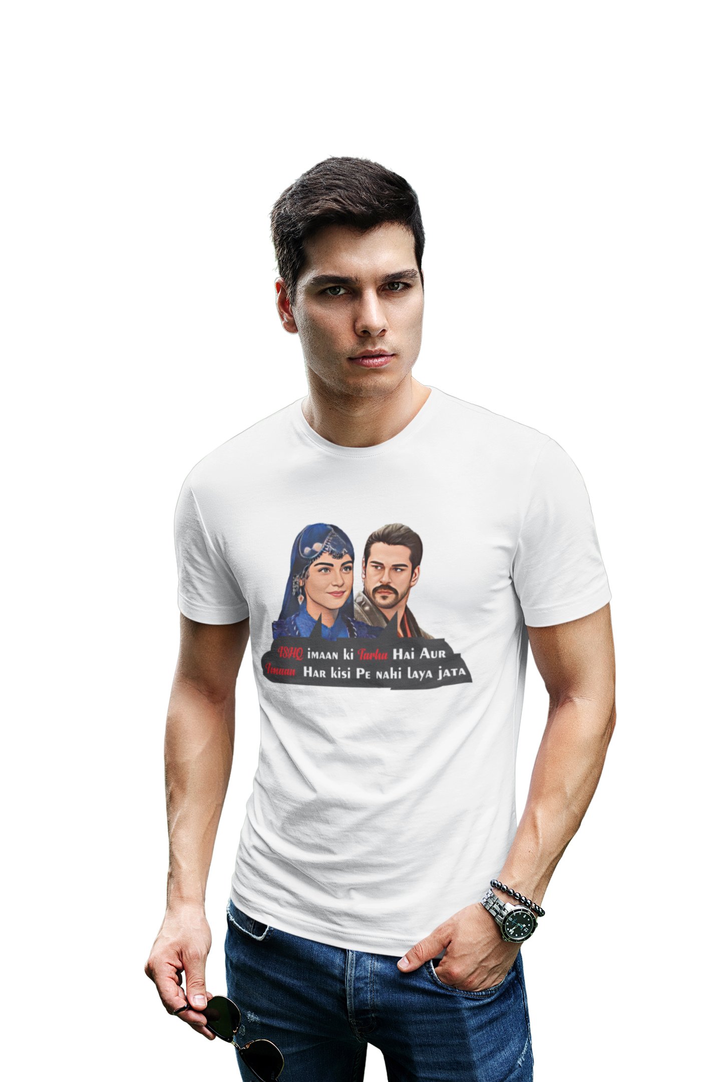 Ishq Imaan ki tarha hai - White - The Ertugrul Ghazi - 100% cotton t-shirt for Men with soft feel and a stylish cut