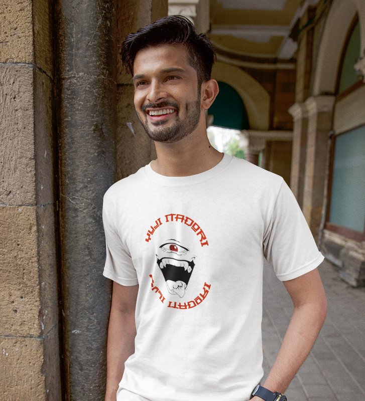Itadori Two Faces, Printed Cotton White Tshirt For Mens and Boys