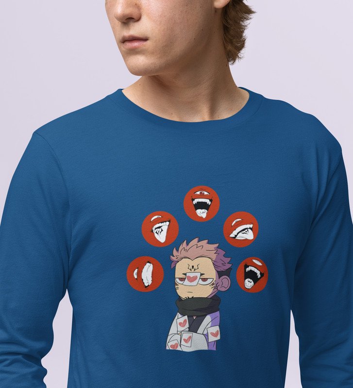 Itadori's Five Faces Cotton Blue Full Sleeves Tshirt For Mens and Boys