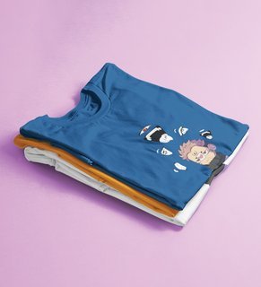 Itadori's Five Faces Cotton Blue Tshirt For Mens and Boys
