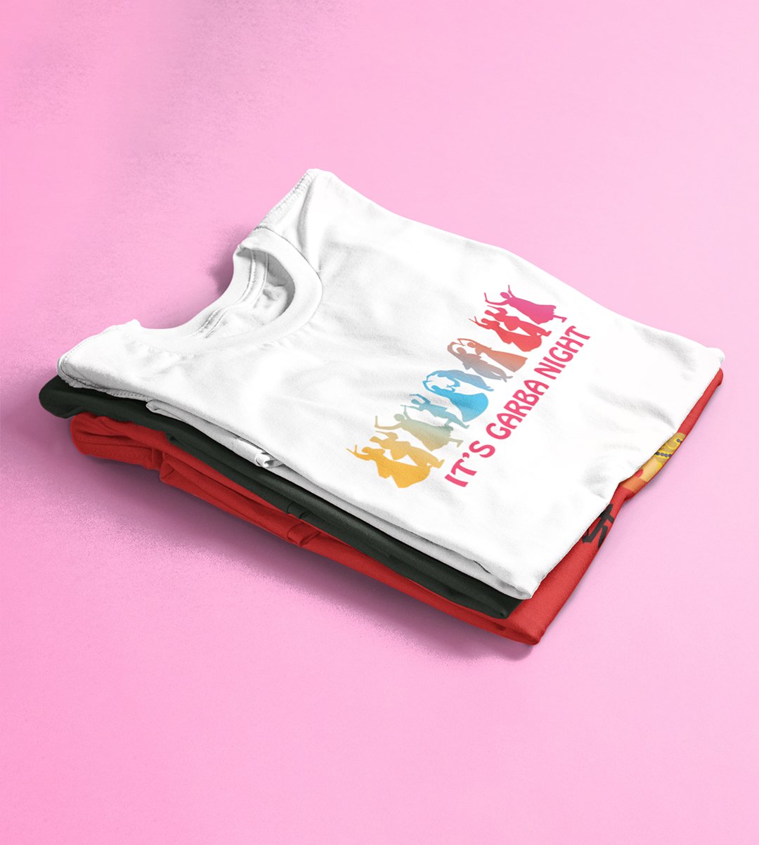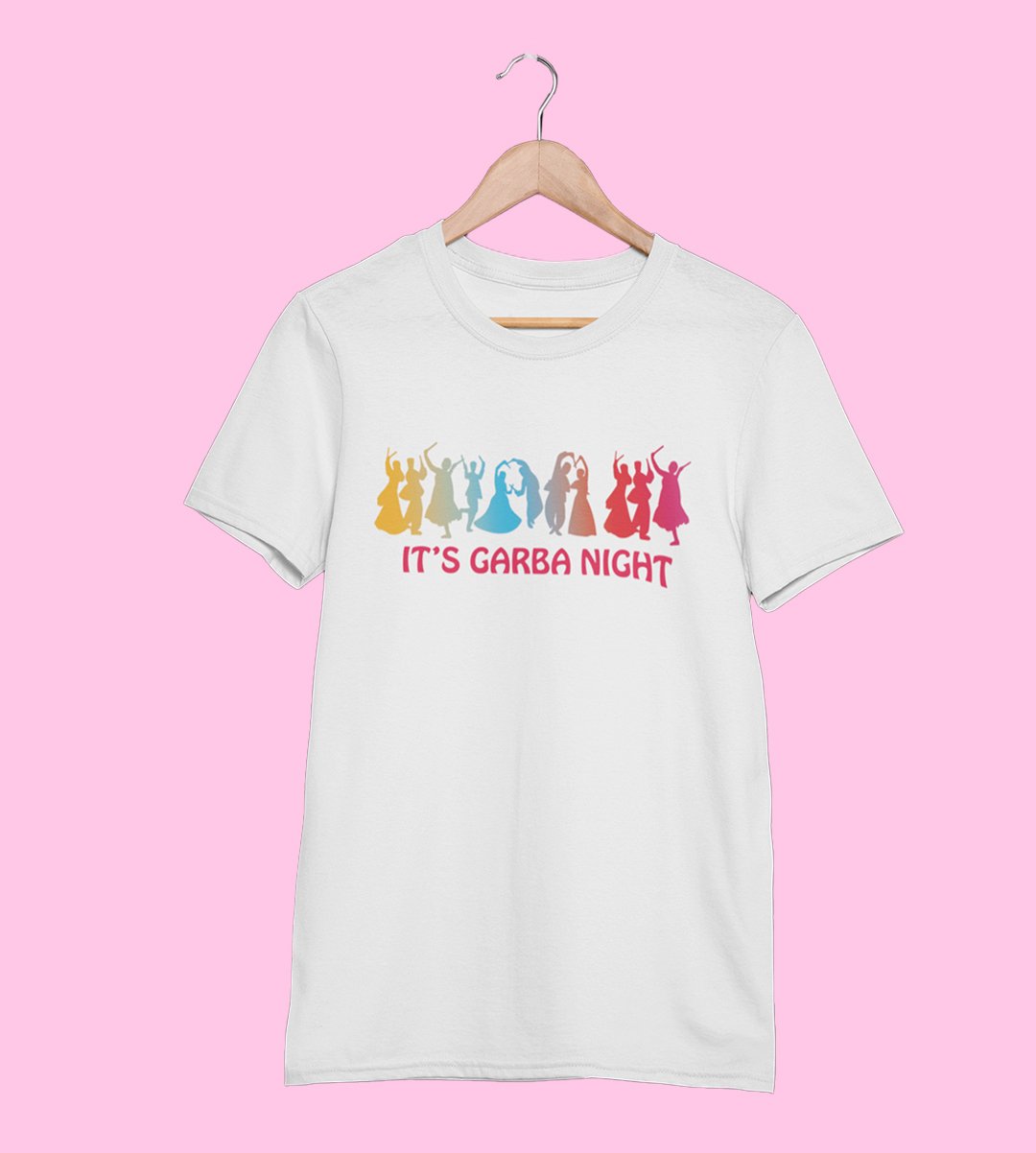 Its garba night printed unisex adults round neck cotton half-sleeve white tshirt specially for Navratri festival/ Durga puja